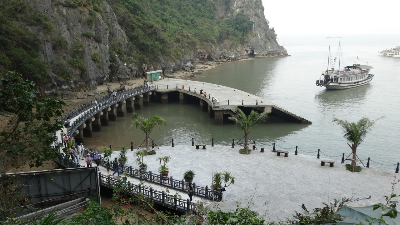 クルーズ船乗場はバイチャイにあります。ここから3時間程度のコースです。途中ハロン湾海鮮料理のディナーと鍾乳洞(ティエンクン洞)の見学が含まれていました。ハロン湾は夕日もきれいなのでその時刻を見計らっていくのが良いでしょう。