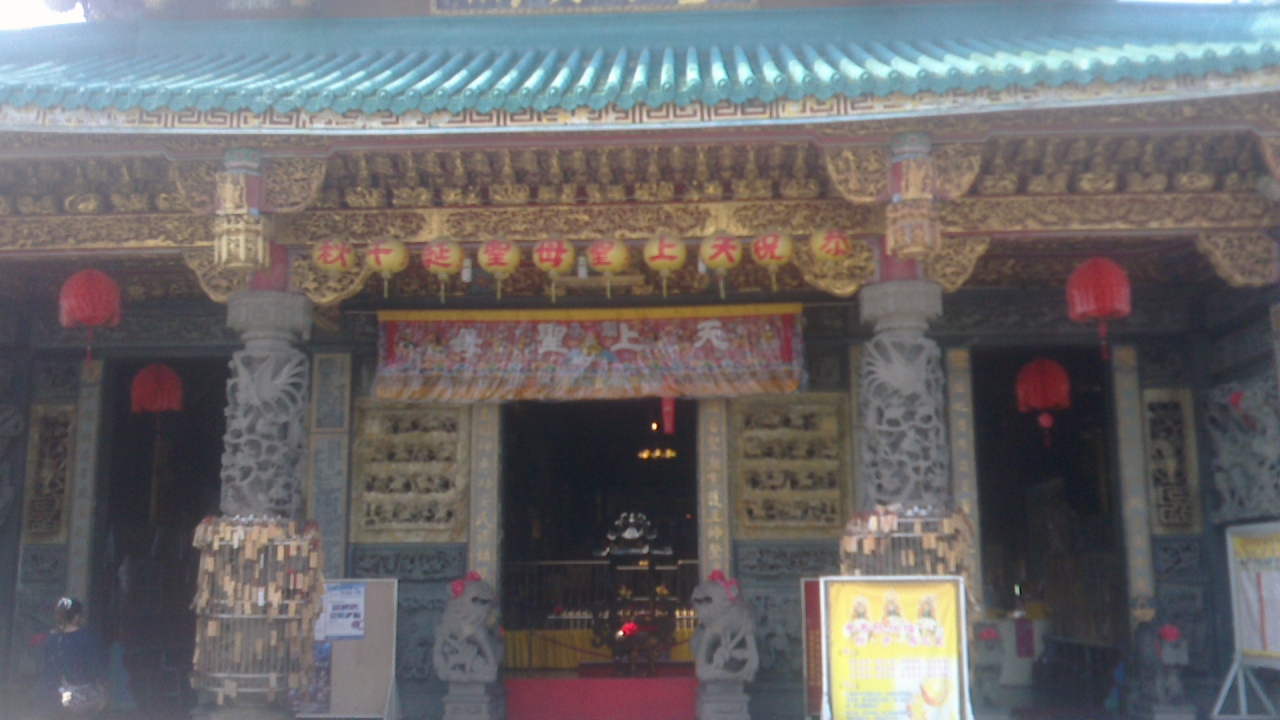 安平古堡のすぐ近くにある広場に面した廟です。航海の安全などにご利益のある道教の女神、媽祖を祀っているそうです。媽祖は天上聖母とも呼ばれているそうで、入口には「天上聖母」の文字があります。壁や柱の彫刻が見事な建物です。