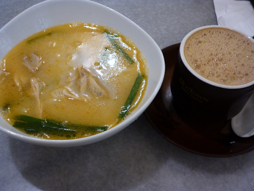 パヴィリオンの中で買い物をしていた時に、なんだか小腹がすいたなぁとおもいパヴィリオンの中のOLD TOWN WHITE COFFEE に行きました。こちらはチェーン店でさまざまな場所にあります。小腹がすいたと思ったのですが、結構しっかりした麺を頼んでしまいました。おやつには大きいのでは?と言われましたが、おいしくてペロッと食べてしまいました。
