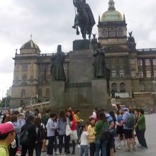 その銅像は、ヴァーツラフ広場を上り詰めたところにある。