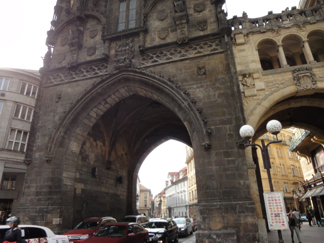 プラハの共和国広場にある、すごく立派な塔です。これが街の入口だったなんて、すごいなーと思います。東側から歩いてくると、この火薬搭から、どんどん見どころが多くなっていきます。昼間もいいですが、夜もきれいでした。