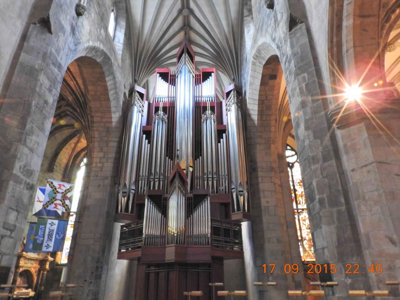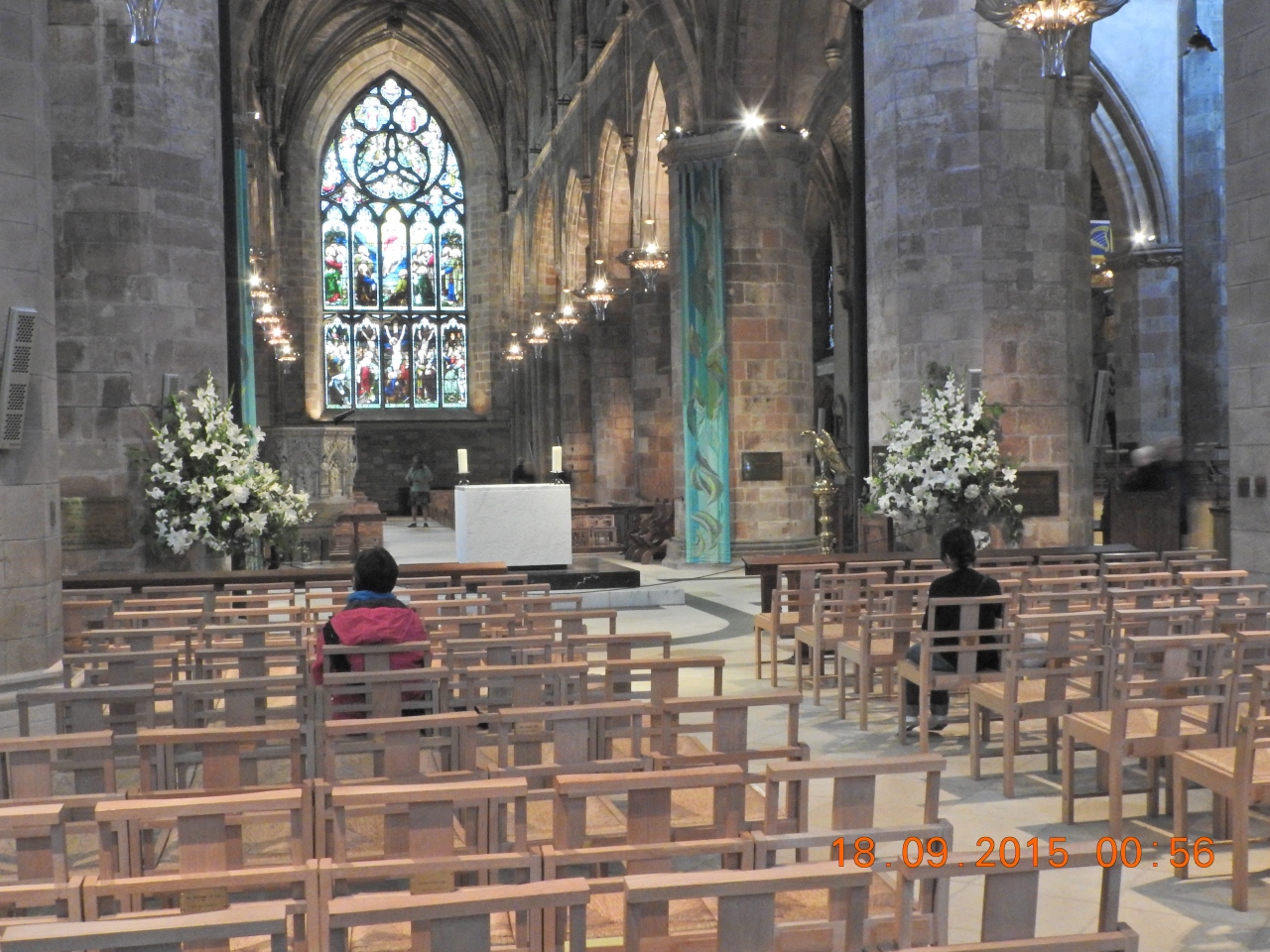 聖ジャイルズ大聖堂のステンドグラスは素晴らしくきれいで、細かな細工が精密に作られています。大きなパイプオルガンからは、終日素晴らしいピアノ演奏の曲が流れています。ツアー料金を払えば、大聖堂の屋根まで、長い石造りのらせん階段を登らせてくれ、屋根の上で記念撮影ができます。また、大聖堂の時計の心臓部分も見せてくれますし、屋根裏で、木製の人間の像を見つけたのには、びっくりさせられました。すでに上記で述べましたが、スコットランド国立博物館の展示は素晴らしく、ロンドンの大英博物館を思わせるようなところです。展示の説明が分かりやすく、地元の親子連れにも大人気のようです。日本の大きな仏像も展示されていました。