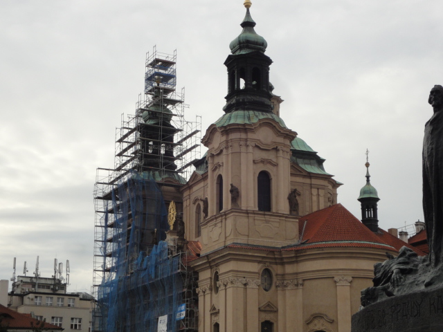 プラハの旧市街広場の北側の奥の方にある、教会です。外観は修復中のため、ちょっと全貌がつかめないかんじでした。旧市街広場には他にも見どころの多い建物が多いので、一つくらい隠れててもいいのでしょうか。中はコンサートか何かでチラッとしか見れなかったのですが、豪華そうでした。