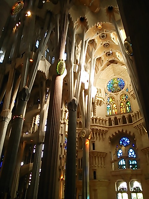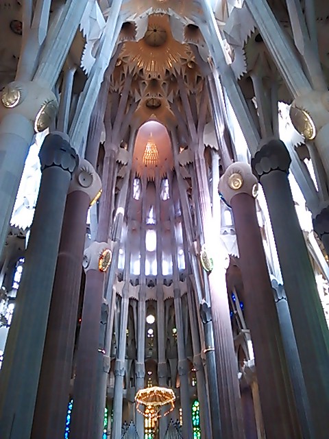 中に一歩入るとガウディは森をイメージして造ったと言われるスペース。柱はフランス、イタリア、遠いところではイランから柱を運んで来たそうです。上を見上げていると本当に森の中をお散歩している様な気にさへなります。また、ガウディのお墓は地下にあります。