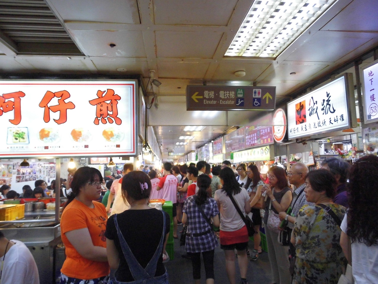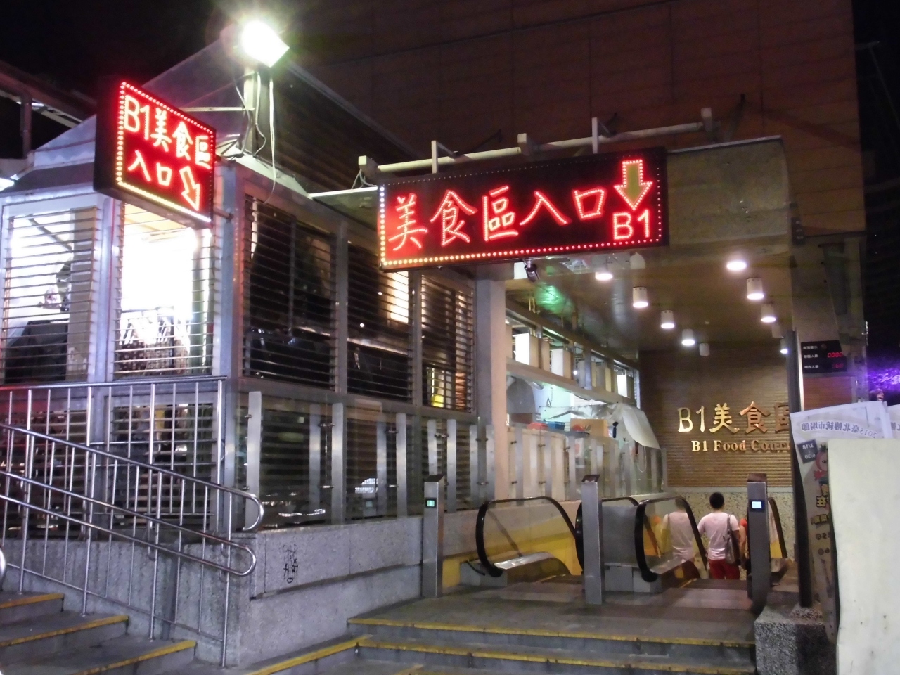 士林夜市の中にある 士林市場(美食街) エスカレーターで地下一階へ