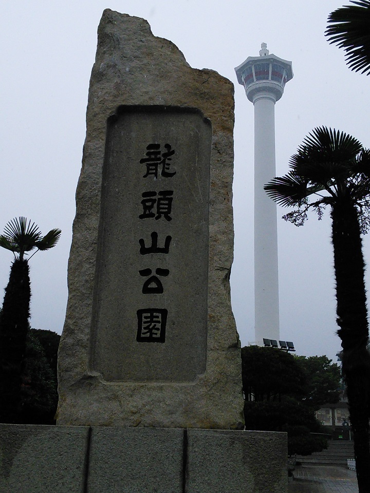 釜山タワーの足元の公園でございまして花時計や市民の鐘といったものがならんでおりました。