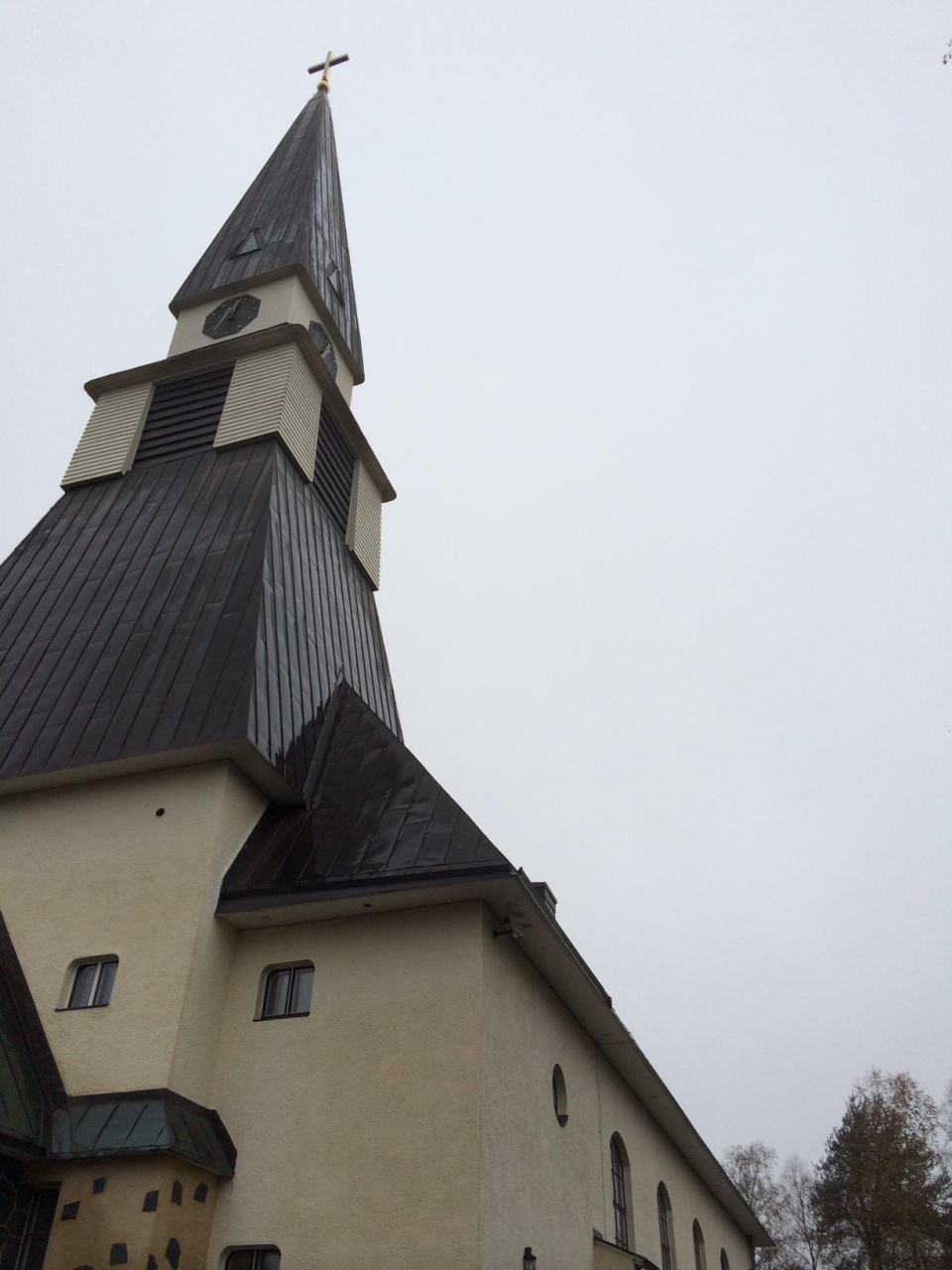 ロバニエミを見続けてきた教会ということで足を伸ばしましたが、最初に行ったときは大雨の上閉まっていてみられず、二度目のときは土曜日で結婚式が立て続けに入っているようでした。