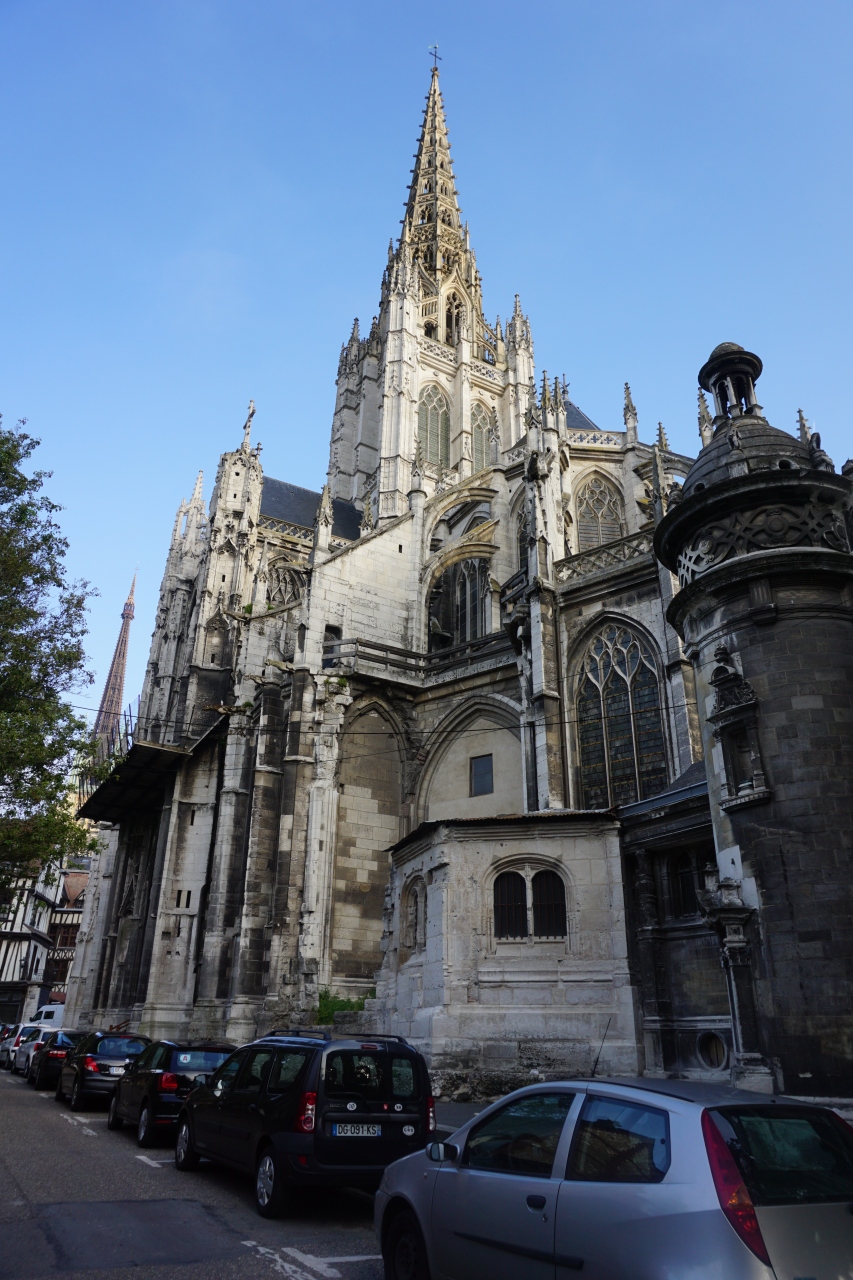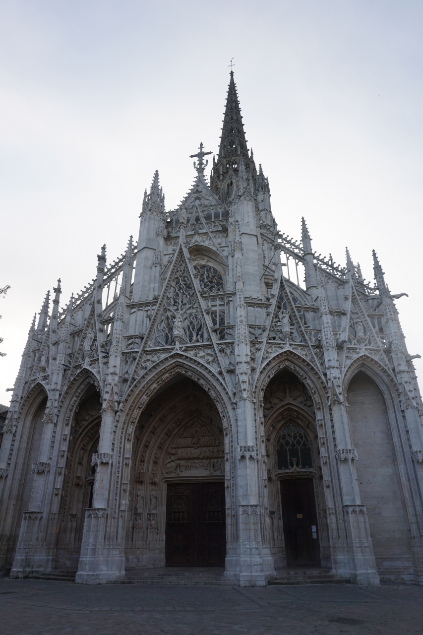 ルーアン大聖堂の近く、レピュブリック通りを渡ったところにサン マクルー教会があります。朝の散歩の際、訪れましたが、外観がとても繊細な彫刻で飾られていて、素敵でした。フランボワイヤン・ゴシック様式の傑作のひとつだそうです。