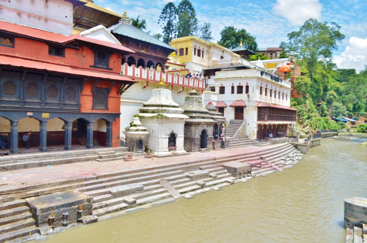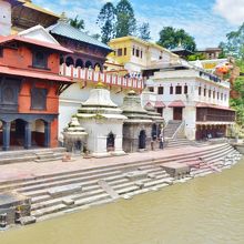 カトマンズ郊外に位置する、世界遺産のパシュパティナート。パシュパティナートには火葬場が作られているが、ガウリガートはバガマティ橋を挟んで庶民が荼毘に付されるアーリヤガートと王室が荼毘に付されるガウリガートに分かれる。王室が廃止になったので、現在ガウリガートでは荼毘に付すことがないそうだ。