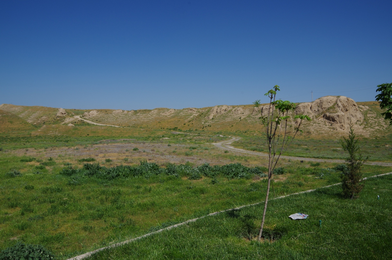ウルグベク天文台に行く途中に、アブラシャブの丘が見えてきます。広大な丘陵になっています。昔は、ここに、サマルカンドの街があって、繁栄していたそうですが、チンギス・ハーンにより破壊されたそうです。現代も発掘が続けられていて、博物館に行くと、見ることができます。