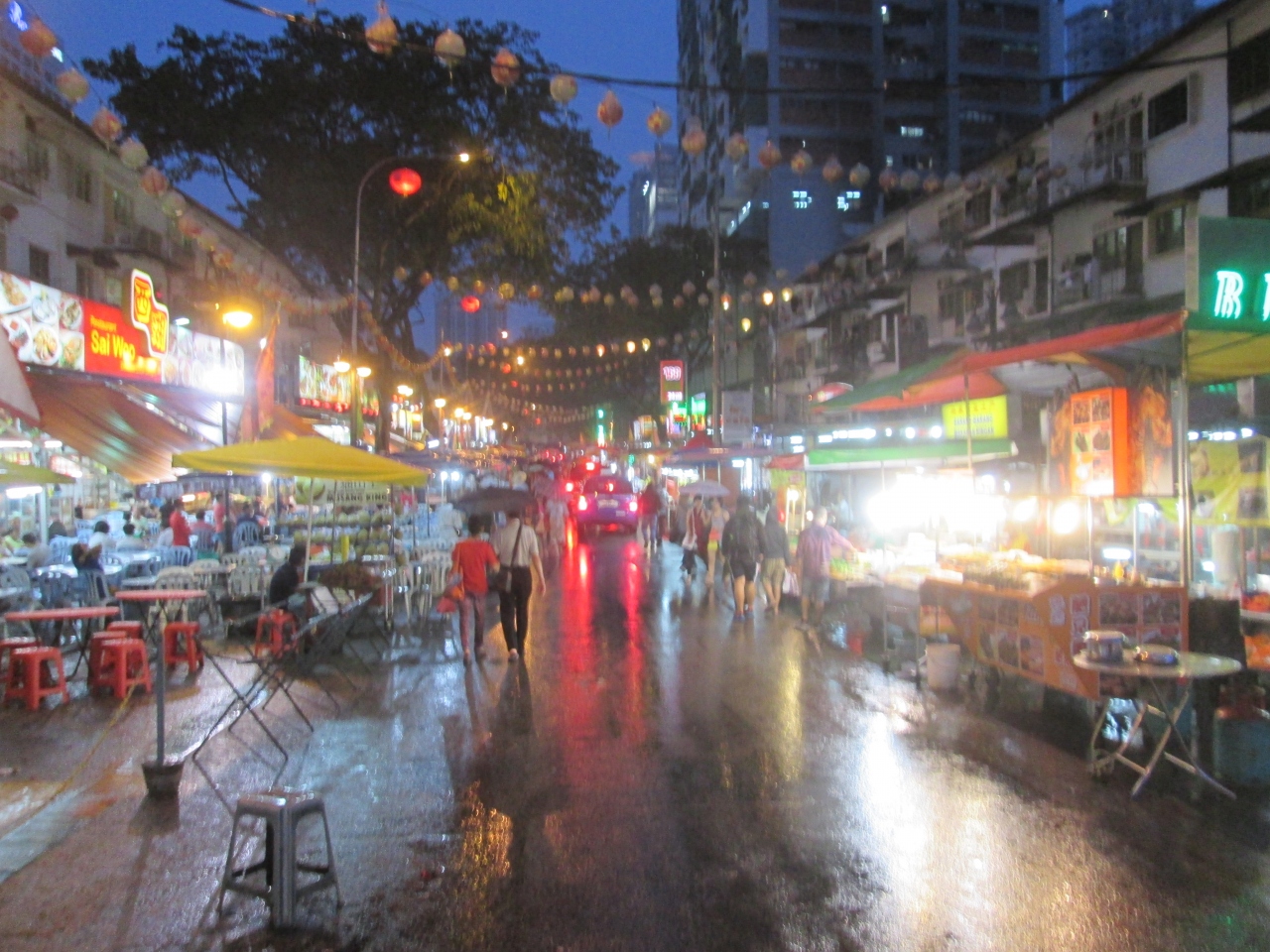 8月のクアラルンプールは雨が降る夜がありました。通常は夕方頃から座席がなくなるほどアロー通りにある屋台は混雑しますすが、雨のときは、さすがに店内は閑散としていました。雨が上がってから訪問すると、少しずつお客さんが訪問してきました。