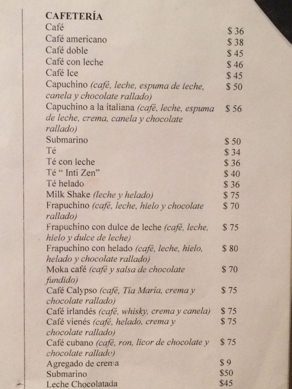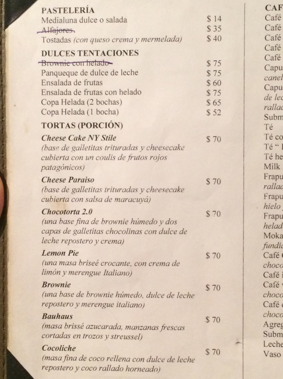 カフェのメニューは大したものはないけど、ケーキやエンパナーダ、クロワッサンはディスプレイがあるので注文前に確認できます。