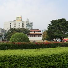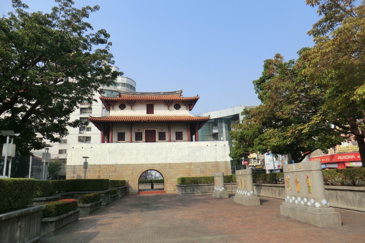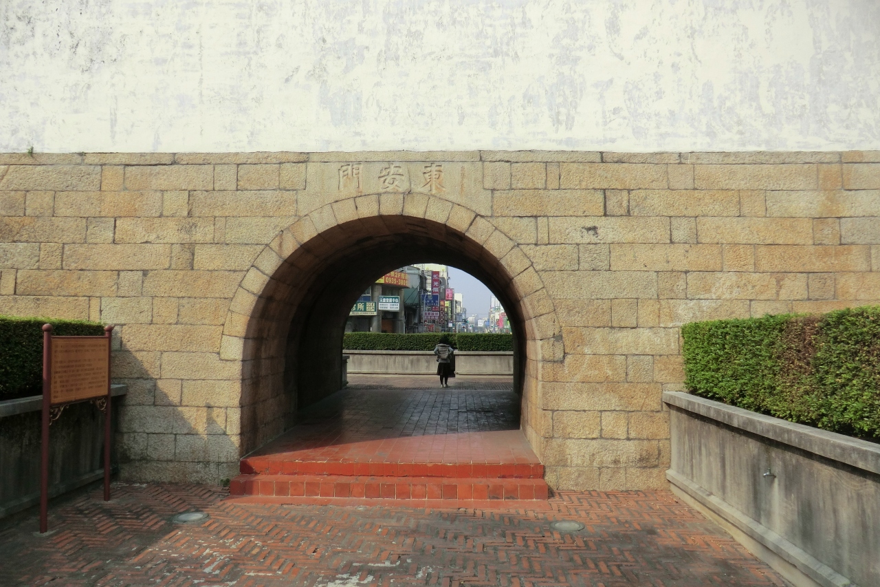 東門路を駅に向かって行く途中、ロータリーの中にこの門があります。台北の東門は中に入ることができなかったのですが、ここでは横断歩道もあり、門のある公園にたどり着くことができました。
