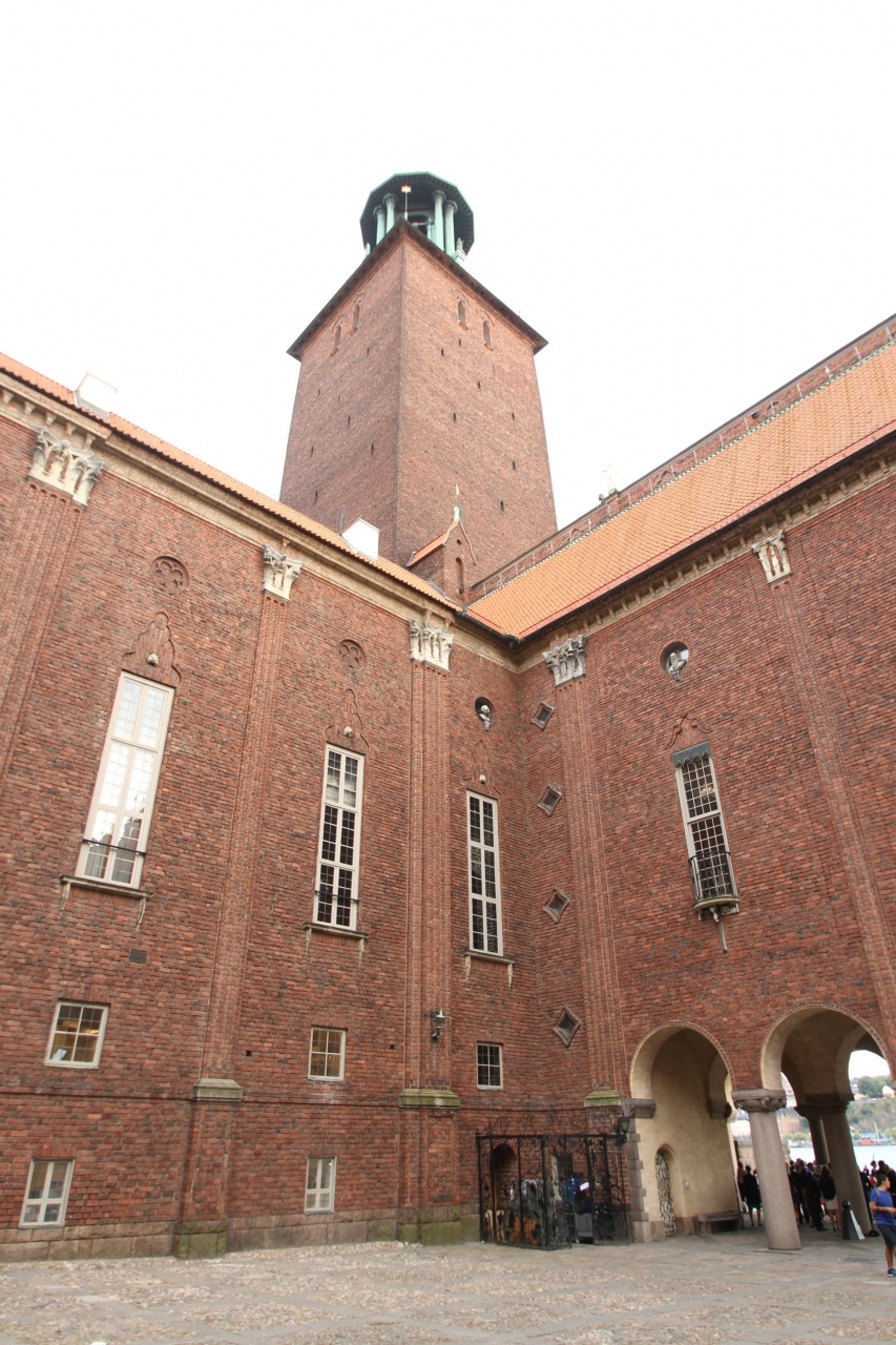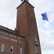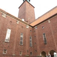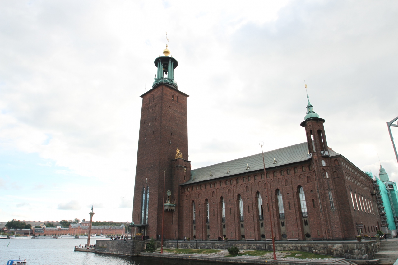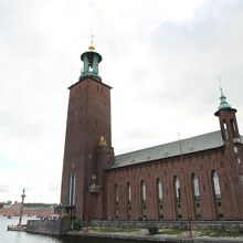 ストックホルム市庁舎は、ストックホルム中央駅から歩いて行ける距離で、運河沿いに建っています。