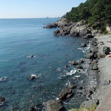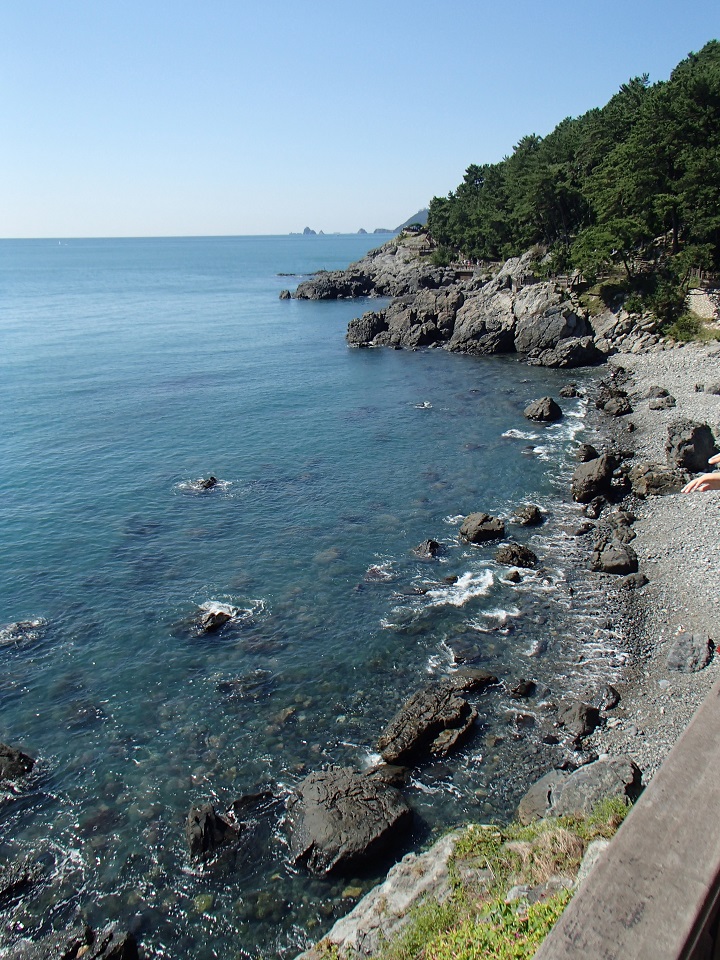 釜山の景勝地ヘウンデビーチの隅にございます岬全体が公園になっておりまして松林に吹く風と岩場に打ち寄せる波がすがすがしい絶景でございました。