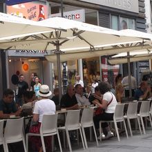 道の中央にもテラス席がオープンしていて、お茶をんだり、おしゃべりしたりしていました。