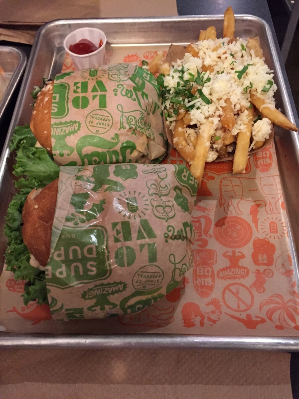 注文したのはチーズバーガーとガーリックポテト。美味しいのですが凄いガーリックの量なので翌日の息が少し不安になる位ですので、注文は慎重に。