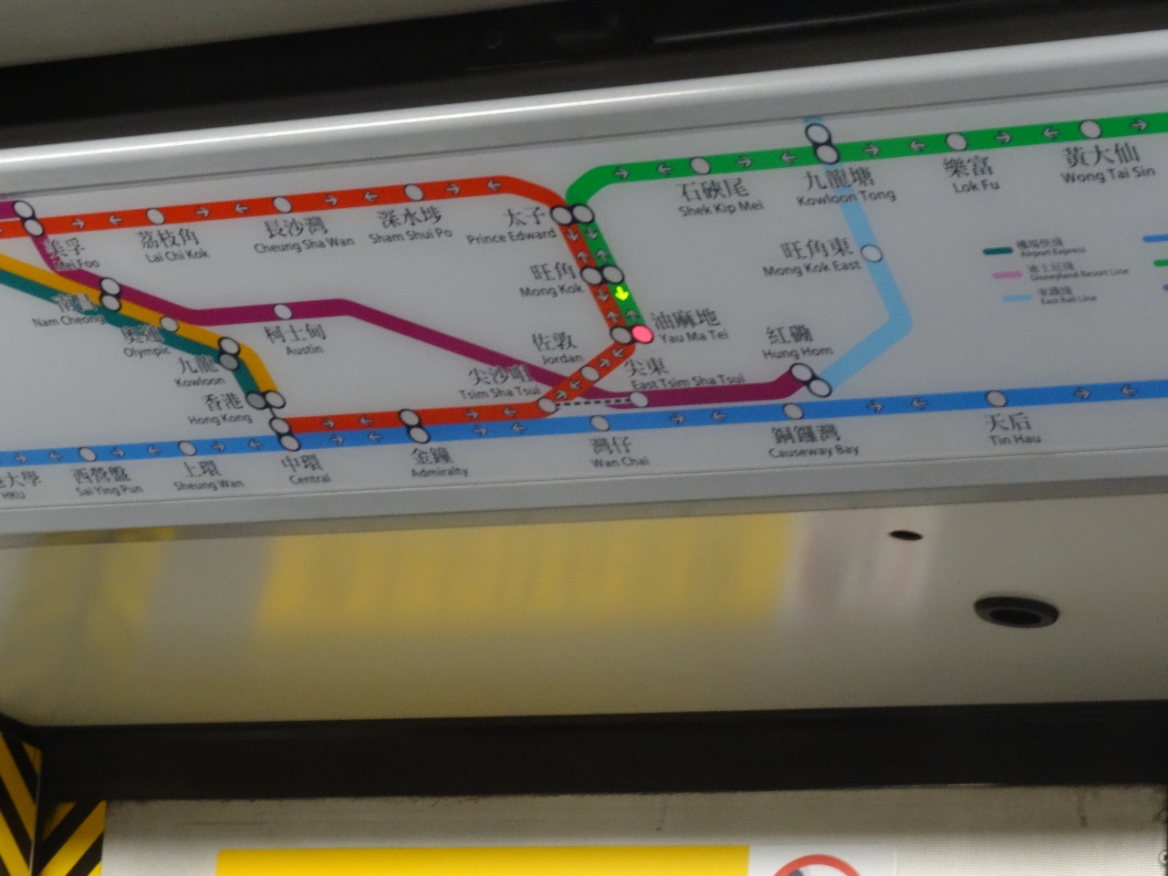 一区間5香港ドル弱。3、4日の滞在ならオクトパスの最初のチャージ分で足りる。太子のホテルに泊まっていたので、彌敦道直下を走るラインカラー赤の荃湾線はたびたび利用した。