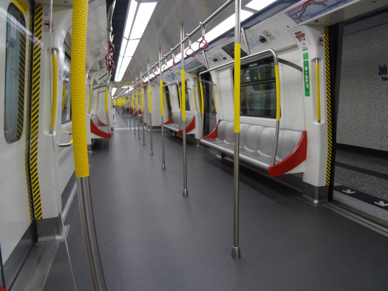 乗り方は日本とほぼ同じ。車内には路線図もあるので、まず迷うことはない。乗換駅での表示、駅周辺地図などもほぼ日本と一緒。しかも漢字なので心強い。