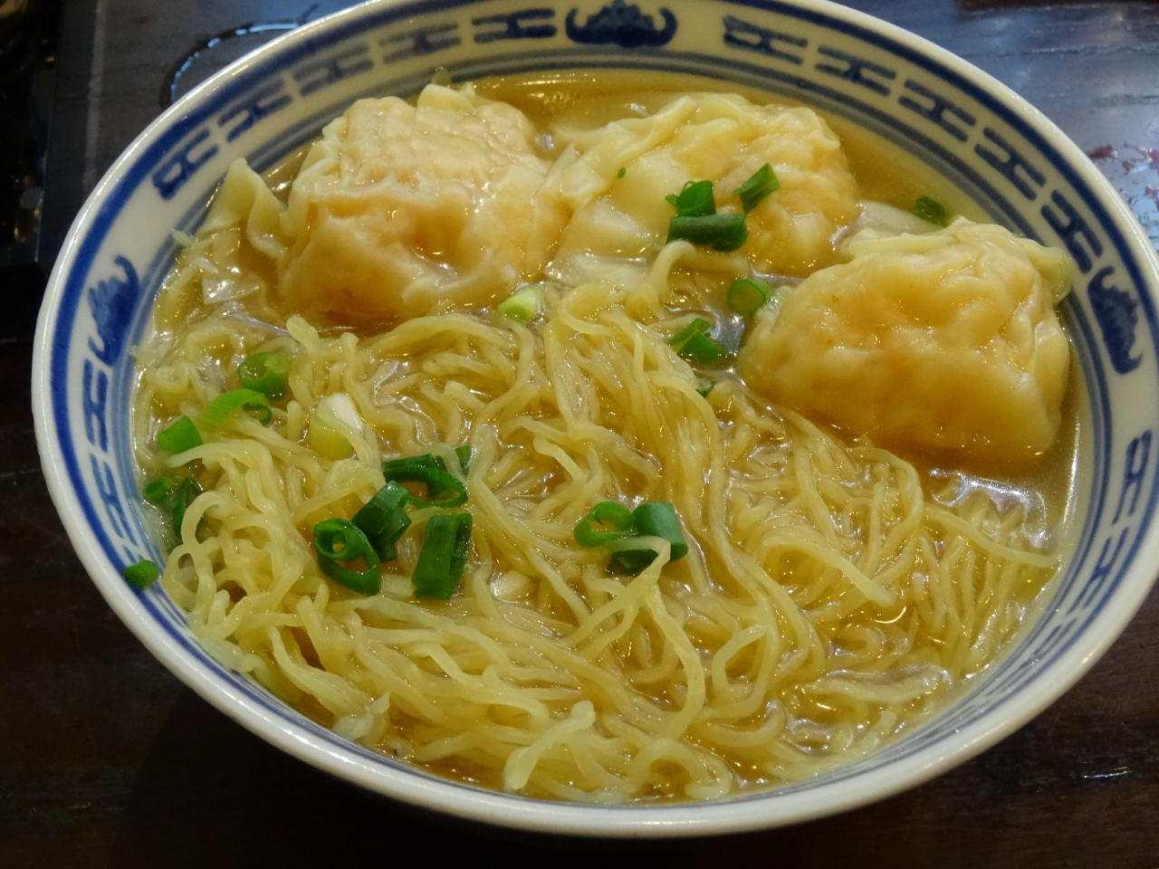 2、3人の組が多く、1人だったので順番を飛ばして店内へ。並んでいる時間は10分ほどだった。香港流に当然、相席。席に座るや、ほぼ同時に雲呑麺が運ばれてくる。なんという手際のよさ。雲呑麺を強制的に注文させただけのことはある(笑)。