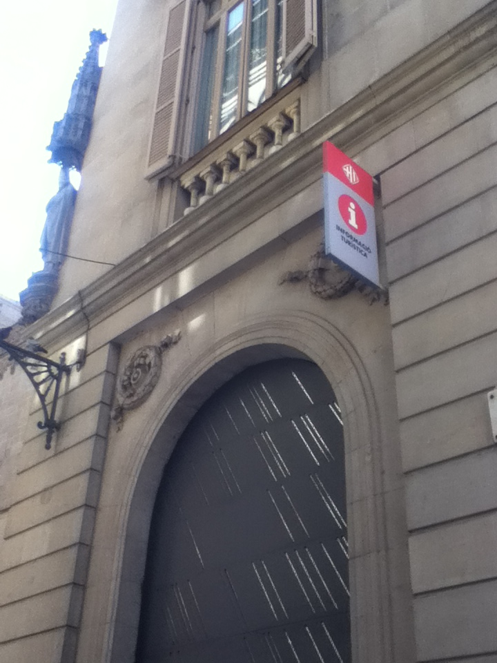 ランブラン通りからフェルマン通りに入りしばらく進んだ処にこちらの広場がある。広場はあまり広くはないが、広場の周りには市庁舎や観光局のインフォメーション等施設がある。観光で分からないことがあれば、こちらのインフォメーションに尋ねるのもいい。また北側にはカテドラルや王の広場、歴史博物館等観光施設があり、その途中の狭い路地沿いには中世の建物が今も残っている。広場から東側へ進めば、ピカソ美術館等のあるリベラ地区がある。これら付近の観光施設とともに、訪問するのもいいかもしれない。