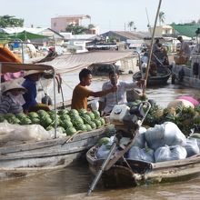 主に野菜や果物を乗せた卸売り船が何十隻も見られました。