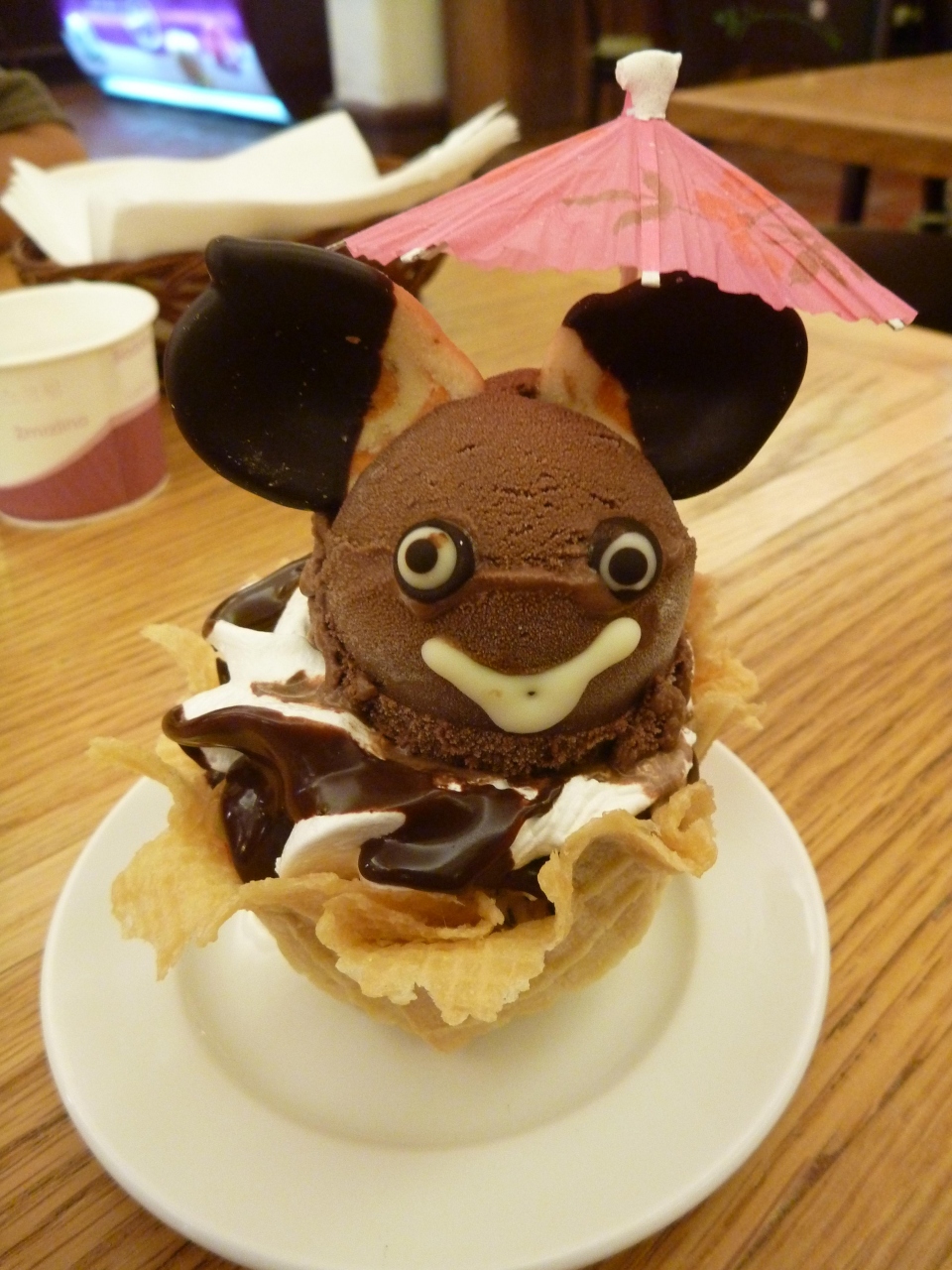 アイスは傘など飾りがついて、見た目もかわいらしく味もおいしかったです。