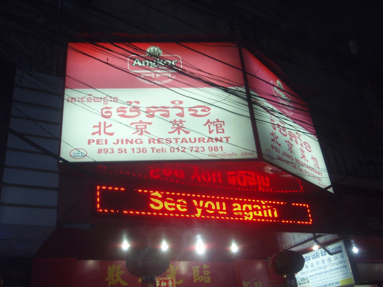 夜20時30分ごろ行きました。21時30分までの営業と確認していたのでまずは水餃子1.5?、焼き餃子2?とビール大瓶2?を注文。若くてかわいい女の子の店員。笑顔の一つもなくやる気のない態度でお客さんも私達だけなのでなんだか落ち着かない雰囲気です。ビールはぬるかった。水餃子焼き餃子ともに皮が厚めで弾力があり味がしっかりついてます。ボリューム満点でコスパ良し。21時ちょっと前に締めで麺類とチャーハンを注文するつもりだったのに厨房にいたカンボジア人の料理人や店内にいた店員みんなが夕食を食べ始めようとしていたので追加注文を頼むとめんどくさそうな顔でもう駄目だと言われました。せめて一言食事前にラストオーダーを聞いてほしかったです。後味の悪い夕食でした。二度と行きたくないお店です。