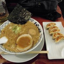 日本の関東地方のラーメン店のようで、豚骨ベースですが癖がない美味しいお味です。ビールとギョーザも一緒に注文し、味はシンプルでした。