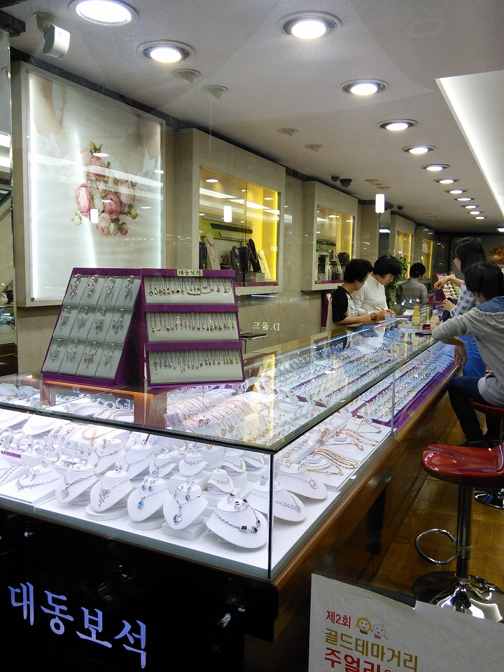ゴールドテーマストリートにならぶ宝飾店をのぞくのが楽しい界隈でございます。
