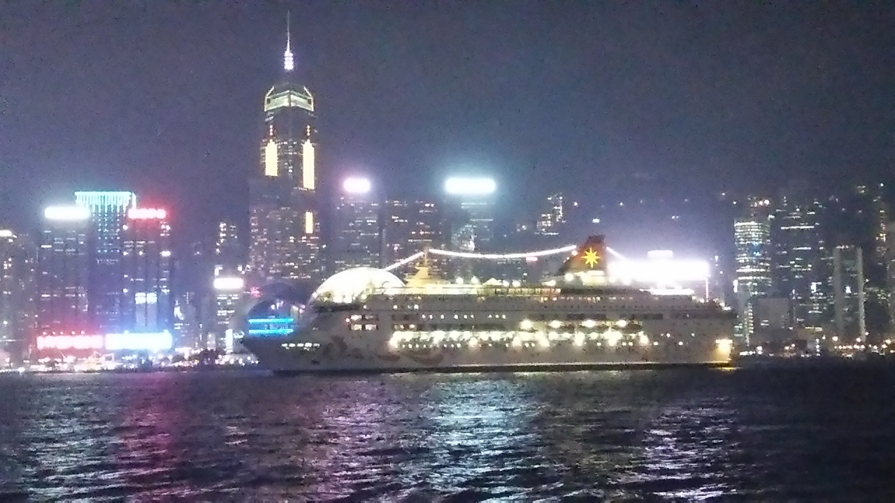 九龍と香港の間の海峡が丸ごと港になっているように見える。観光船やスターフェリーの他、けっこう大きな船も通っている。ビクトリアピークから眺めるのも美しいが、スターフェリーのワンチャン航路から見るのが結構良い。