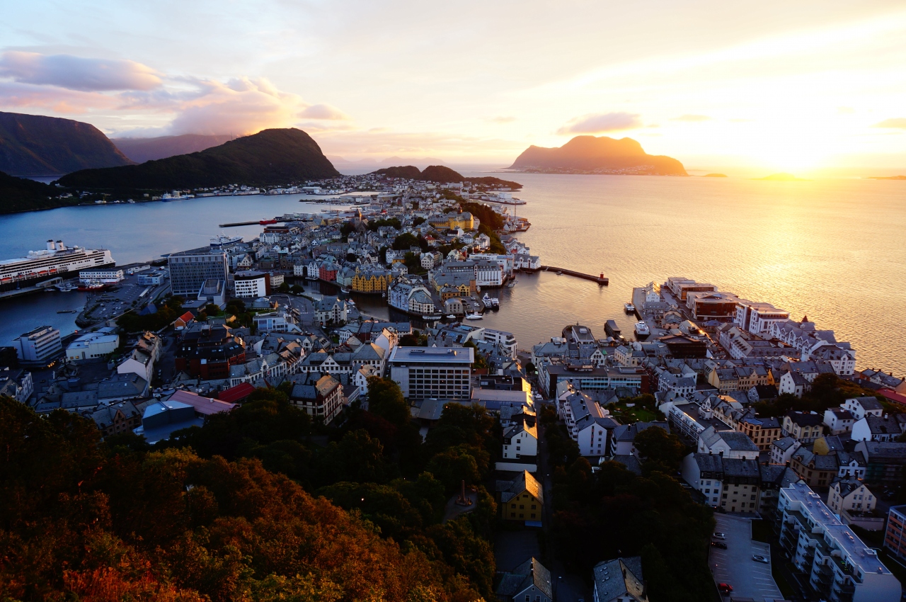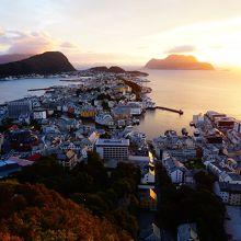 オーレスンに来たなら、この山に上ったほうが良い。Scandic parkenホテルの裏の480段の階段を上れば絶景が見られる。途中にはベンチがあるので休憩ができる。頂上からはオースレンの島の形が見られ、沈んでいく夕日と暮れた後の灯りがともった町の風景もまた違った味わいがあっていい。
