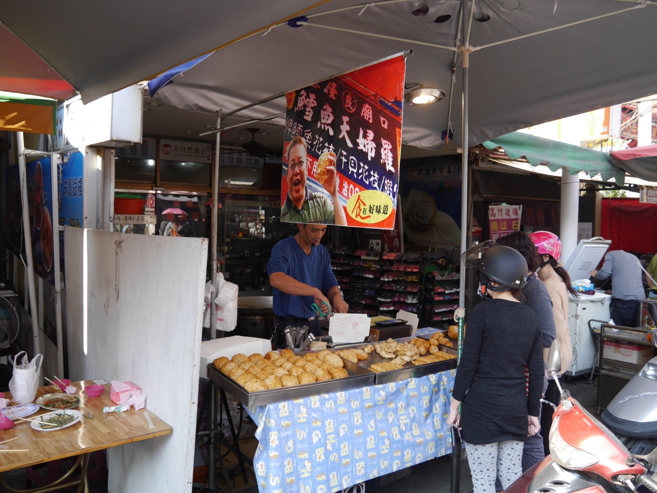 廟前路は旗津のメインストリートで、いろいろなお店が並んでいます。その中でも「鱈魚天婦羅」というお店のこの食べ物、とても美味しく海辺のベンチでゆっくりと味わいました。鱈の練り物、まさに日本での高級かまぼこ、そのもので、絶品です。