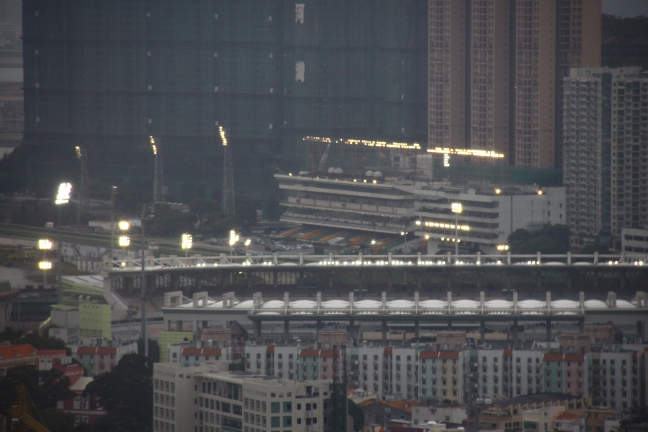 タイパ島にあるマカオ競馬場。カジノほどメジャーではなく、香港競馬ほどのもりあがりはないものの、大規模カジノを背後に眺めながら、地方競馬のような感覚で競馬を楽しむことができる。私が行った時はナイターレースでした。