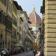 フィレンツェで最も美しい広場と言われているサンティッシマ・アンヌンツィアータ広場ですが、久し振りに訪れた今回は教会が修復中で美しさ半減、捨て子養育院美術館の柱廊はルネサンス様式のアーチが健在でした。この広場から見えるドゥオーモのクーポラが大好きです。