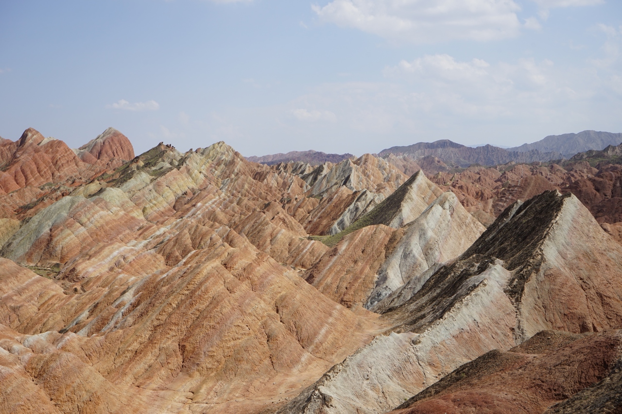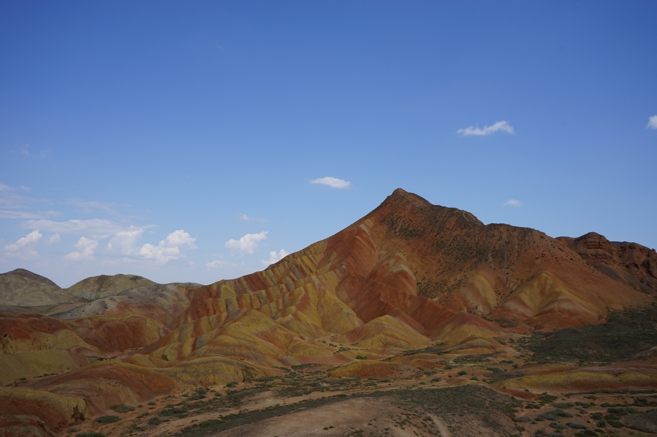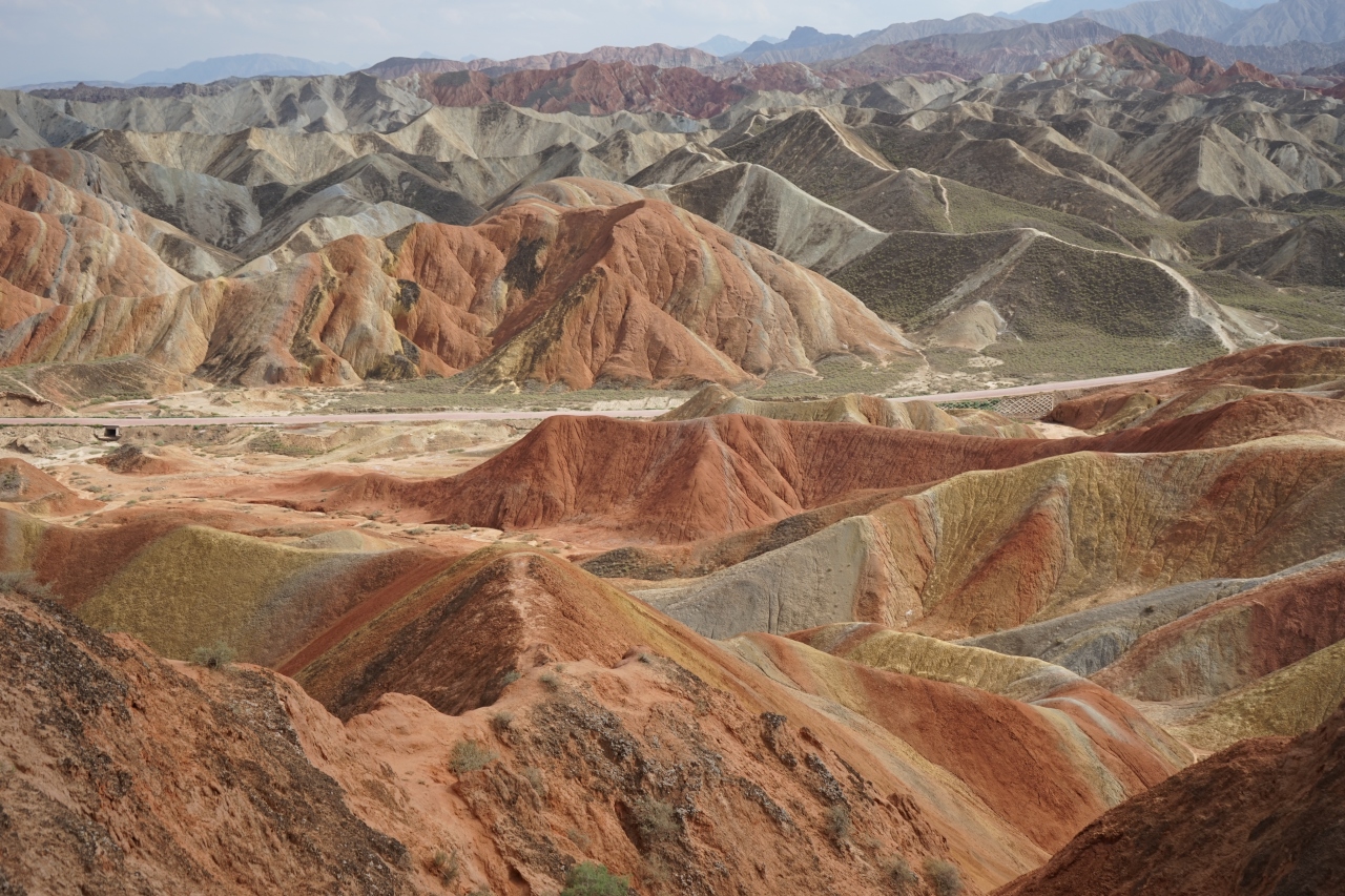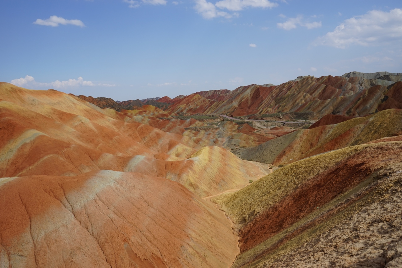 この地域の地質には様々な鉱物(硫黄、鉄、銅など)が大量に含まれており、その大地がシルクロード独特の強い日差しを浴びると、すばらしい地層の縞を描き出すのだそうです。