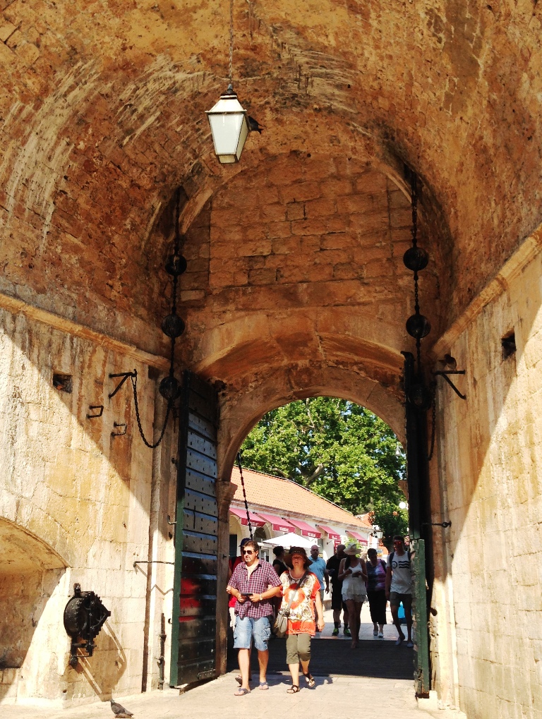 空港から市内方面のバスに乗ると、ピレ門に着きます。ここで降りて、市内循環のバスに乗り、ホテルへ行きました。ピレ門の周りには、飲食店や現地発着ツアーの申し込みもあり、にぎわっています。毎日、ここからスタートでした。