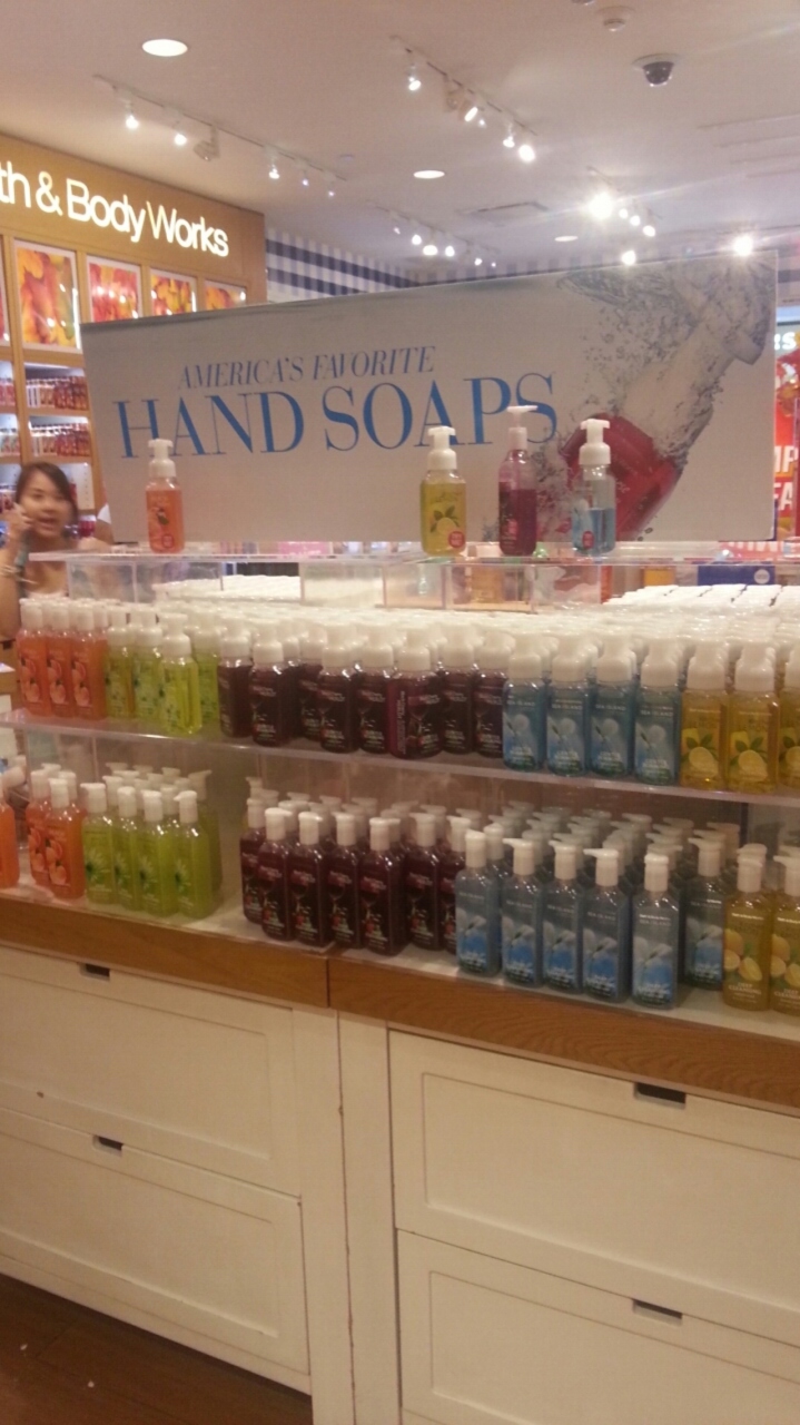 店内に水道があるから、自分の好きなハンドソープ・ボディーローション・ボディークリーム・シャワージェルを見つけてみてください。