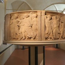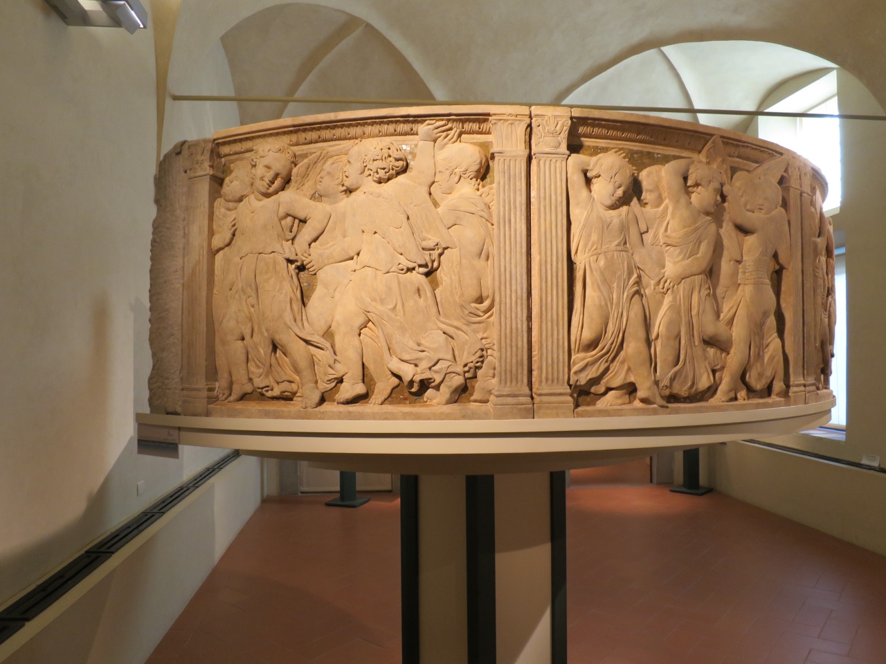 プラートのドゥオモを正面に見て左手に大聖堂付属美術館があります。プラートのドゥオモはファサード左上にバルコニー付の説教壇がありますが、これは聖なる帯を人々に知らしめるためだけに制作されました。この説教壇の大理石装飾部分はレプリカで、オリジナルが美術館で温度・湿度管理された部屋に保管されています。