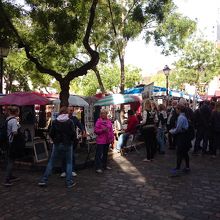 それほど大きくはない広場は、たくさんの似顔絵描きと観光客で賑わっています。私は描いてはもらいませんでしたが、描いてもらっている人もたくさんいて楽しそうでした。広場を囲むように飲食店が多数あるので、休憩にも良いかと思います。