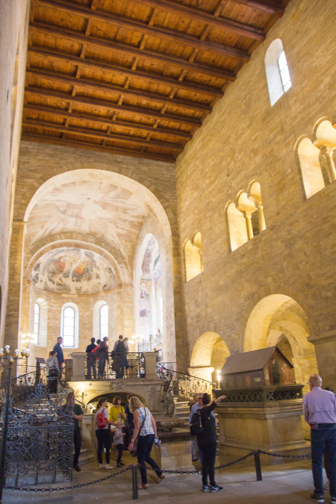 中は少し狭く、暗いですが、石で作られた窓の少ない壁など、普通の教会とは違った趣があります。