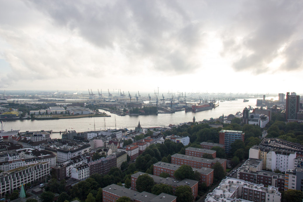 エルベ川の向こう岸のコンテナ群までよく見えます。