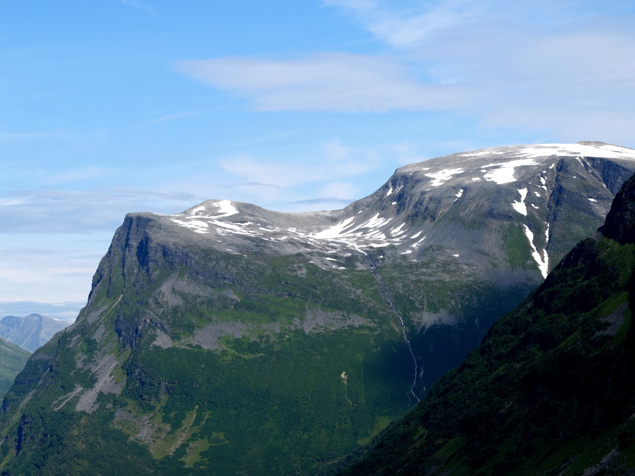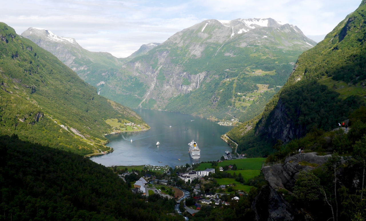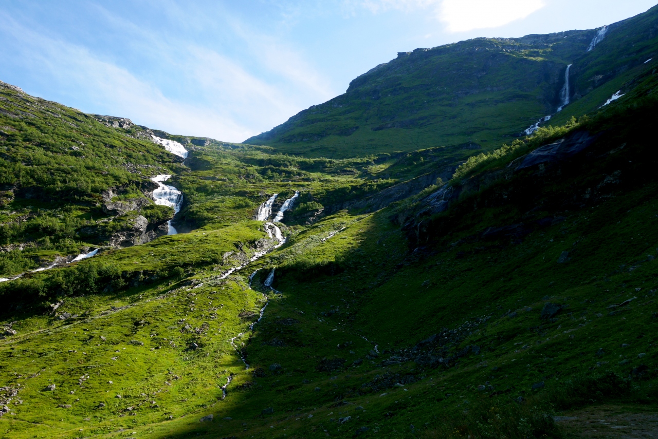 Geirangerの街から4kmあがったところ.大きく下る滝と絶壁からフィヨルドがとてもよく見える.絶景だ.車がなくてもタクシーで来ても往復600NOK程度だ.さらに奥の滝あたりまで行けるとよい.約9km位のところまでに大きな滝や,絶景の見える高台がある.ここまで往復して1400NOKくらいかな.私はレンタカーだったが絶対行く価値はある.Geirangerまで来ていかないのはもったいない