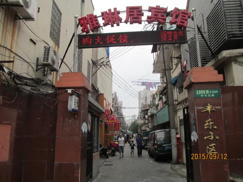 四川北路と多倫路の間に位置する豊楽里は永安里の隣に位置します。永安里と同様に四川北路と多倫路に入り口が設けて有ります。豊楽里は北里3階建てと南里2階建てに分かれており、南里は煉瓦造りの石庫門住宅で、北里3階建ては現代的な住宅です。改装が進み建物内に台所が出来、外の流し台が植木台に変わっています。あまり食事の支度をしないで外食や出来合いを買って来る中国人には台所は必要でしょうか。永安里の中に虹口文物保護単位である太陽社旧址、四川北路1999弄32号があります。太陽社とは魯迅、茅盾など既成の左派系作家に対抗した急進的な若手革命家の集まりで同じ思想の創造社と組んで左派系作家との間で激しい論争が発生しました。また豊楽里の一角には占領時代には日本軍の軍官の宿舎になった湯公館旧址の立派なお屋敷もあります。。