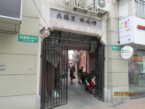 大徳里、恒安坊と書かれた石庫門。 左側が大里で四川北路1545弄大徳里1-43号の住居表示があります。上海優秀歴史建築に認定されたのは43の内33までです。煉瓦造りの部分です。どの家の石庫門も新しく立派に成っています。上海優秀歴史建築に認定されると維持費が市政府より支給されると聞いています。その代わりに勝手な改築は出来なくなるようです。四川北路公園の向かい側、四川北路、新広路、川公路、刑家橋南路に囲まれた住宅街。此処に永豊紡、大里、恒安坊、他があります。石庫門住宅は旧上海の路地住宅の典型的な様式です。土地を無駄なく使うため、限られた面積により多くの人を収容し、また中国人に受け入れやすいように、住宅建設では西洋人から「長屋」と呼ばれる建築方式を採用しました。これが石庫門住宅です。2005年10月31日、上海市人民政府は永豊坊、大徳里、恒安坊が上海優秀歴史建築として保存する事を公表しました。