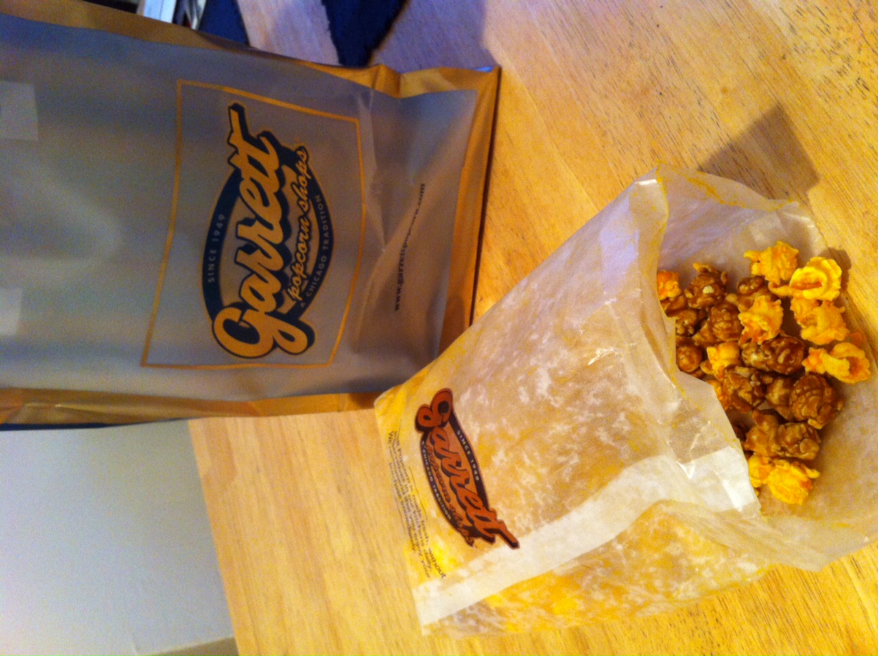 いまや日本の表参道では列をつくっている人気店ですが、もともとはシカゴ発祥です。市内に店舗がいくつかあるので並ぶことはないとおもっていましたが、こちらでも人気らしく、店内は列ができていました。待っている間試食で紙コップに入れたシカゴミックスをもらいました。5分くらい並び、お目当てのシカゴミックスをゲット!チーズのしょっぱさとキャラメルのあまさがちょうどよく、食べだしたら止まらない危険な食べ物です、笑。