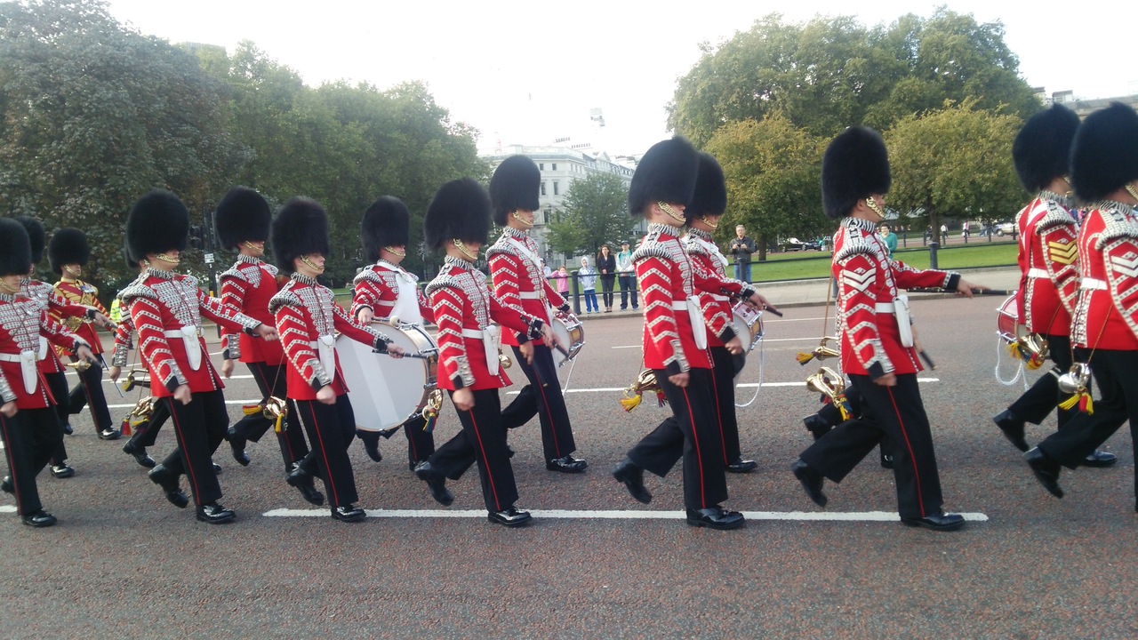 衛兵交替式を見に行きました。やはりロンドンに来たら一度はみたいと思っていたのですがやはり混みあっていて宮殿内で行われている交替はみられませんでした。ただ、回りで行われているパレードは30ぷんくらい前に行っても先頭でみられます。