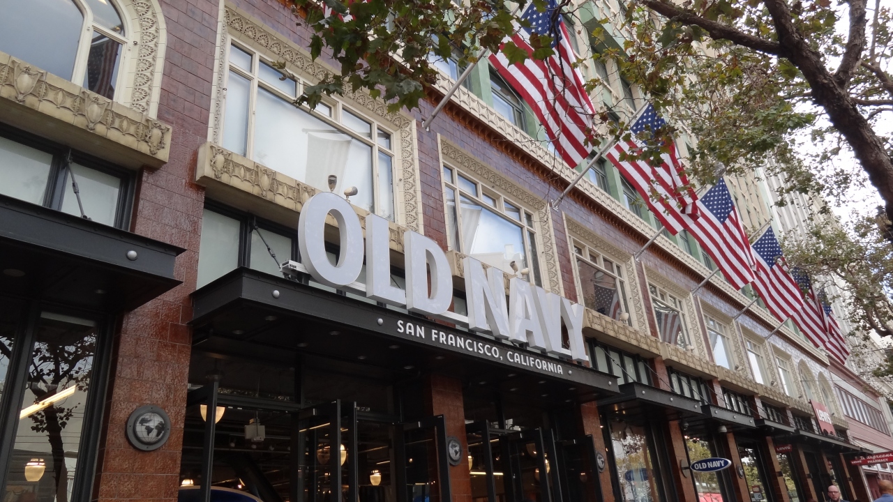 オールドネイビーは、マーケットストリート沿いにあるジーンズやカジュアルファッションの専門店です。日本にも上陸しているお店ですが、ここは特に広くてアメリカンテイストがぎっしりという感じです。カジュアルなのに発色などもはっきりしていて、崩しすぎないおしゃれの感覚が良いですね。