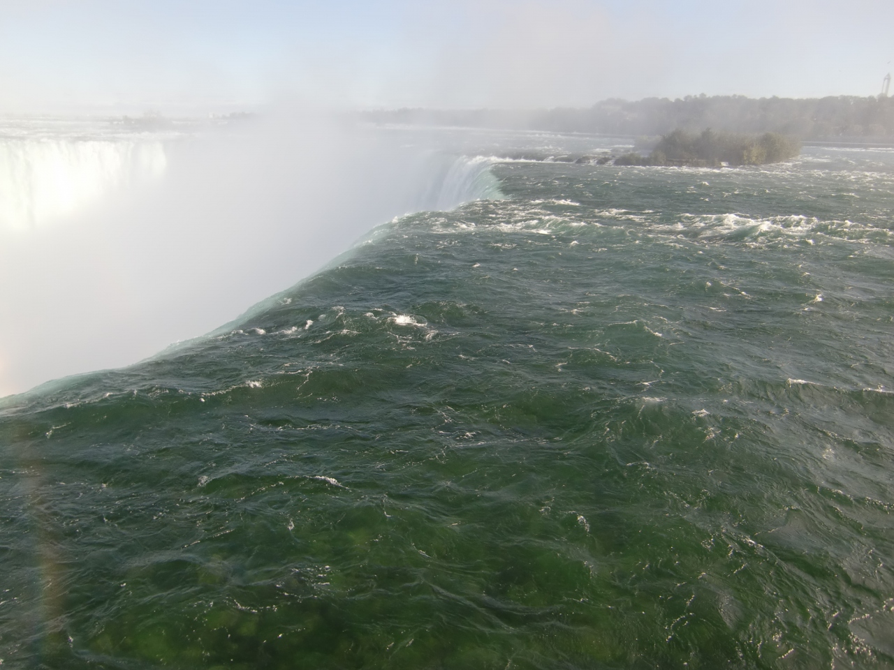 川が滝になる瞬間を見ることができます。轟音を響かせながらすごい勢いで流れてくる川が一気に落下し、滝となるのを間近で見ることができて感動です。ほんとにすぐ真横を水が流れていて迫力あります。水しぶきがすごいのでけっこう濡れました。