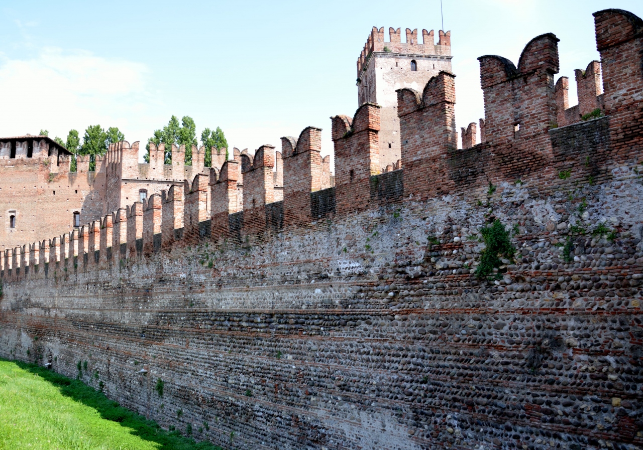 ヴェローナは見どころの多い街です。アディジェ川沿いの対岸に車を駐車し、まずはアレーナに向かいました。ほぼ完全な形で残っているローマの円形闘技場で、現在も現役です。入った時には床には一面に客席用の椅子が並べられていました。次に向かったのがカステルベッキオとスカリジェロ橋です。最も行きたかったのはイタリア屈指のロマネスク教会と言われる、サン・ぜーノ・マッジョーレ教会です。カステルベッキオから川沿いに気持ちの良い散歩道を歩いて10分程です。スラリと高い鐘楼と、美しい回廊が心に残りました。
